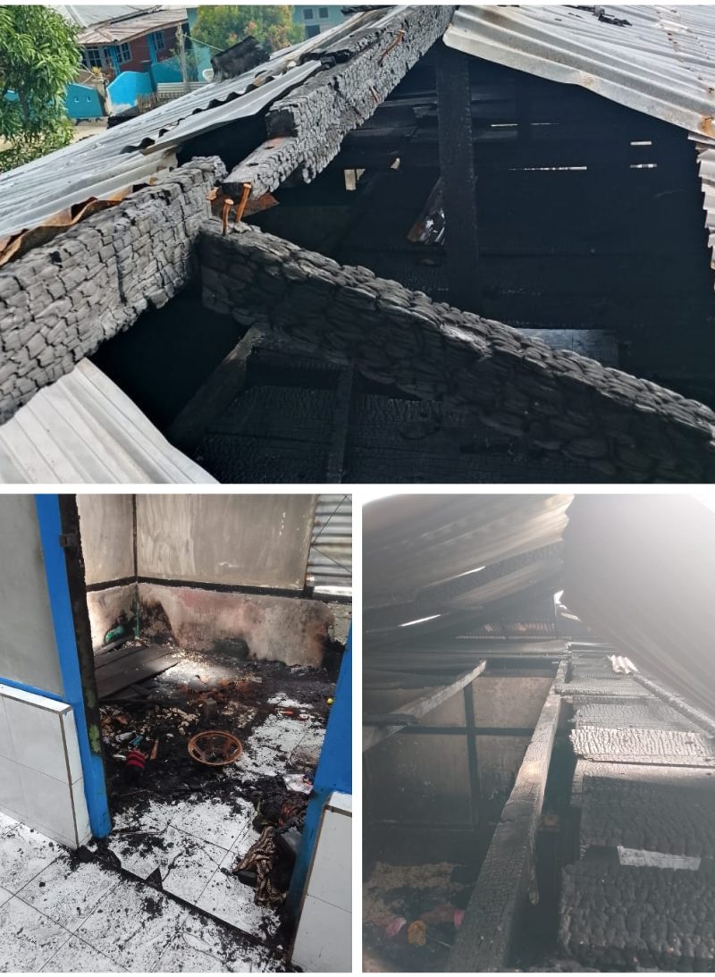 Insiden yang terjadi sekitar pukul 22.00 WIT itu membuat warga panik dan berusaha memadamkan api dengan alat seadanya.
