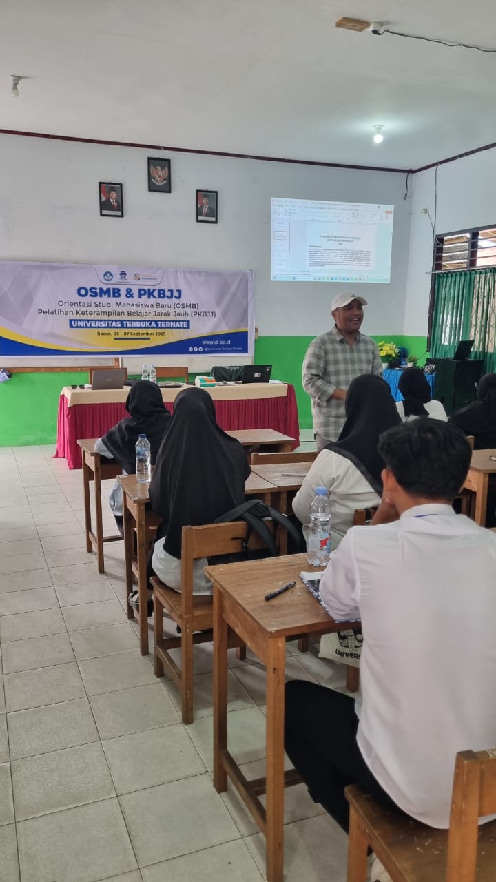 Maluku Utara – Kepala Dinas Pemberdayaan Masyarakat dan Desa (DPMD) Kabupaten Halmahera Selatan, M. Zaky Abd Wahab, tampil sebagai narasumber dalam Orientasi Studi Mahasiswa Baru Universitas Terbuka (UT) Ternate dengan mengusung tema “Strategi Pengembangan Masyarakat Desa.” (11/9/2025)