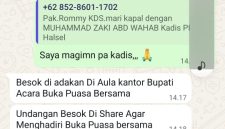 Pihak DMPD Halsel meminta agar setiap kepala desa yang menerima pesan mencurigakan, khususnya dari nomor 085286011702, segera melakukan konfirmasi langsung atau melaporkan kepada pihak berwenang guna mencegah potensi kerugian. (WR)