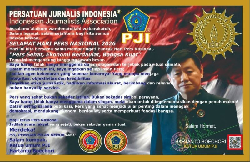 Ketua Umum Persatuan Jurnalis Indonesia (PJI), Hartanto Boechori, dalam pernyataannya menegaskan bahwa tema HPN 2026 mengandung tanggung jawab besar yang harus diwujudkan secara nyata, bukan hanya menjadi slogan.